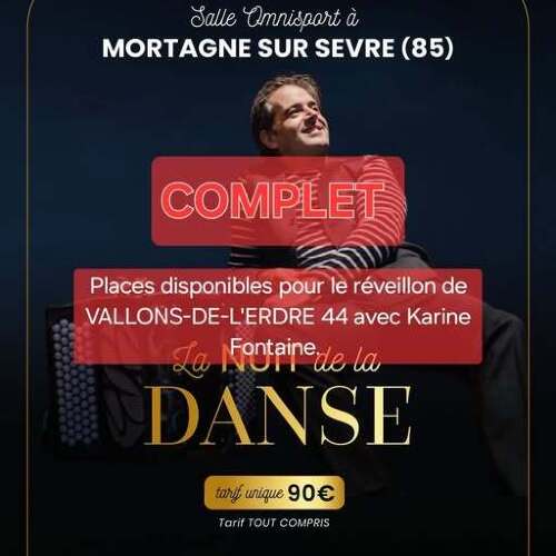 MORTAGNE SUR SEVRE (85) La nuit de la danse - COMPLET - Nous vous invitons, si vous le souhaitez, à vous diriger vers le réveillon de Vallons de l'Erdre (44) qui est également un réveillon séniors dansant.